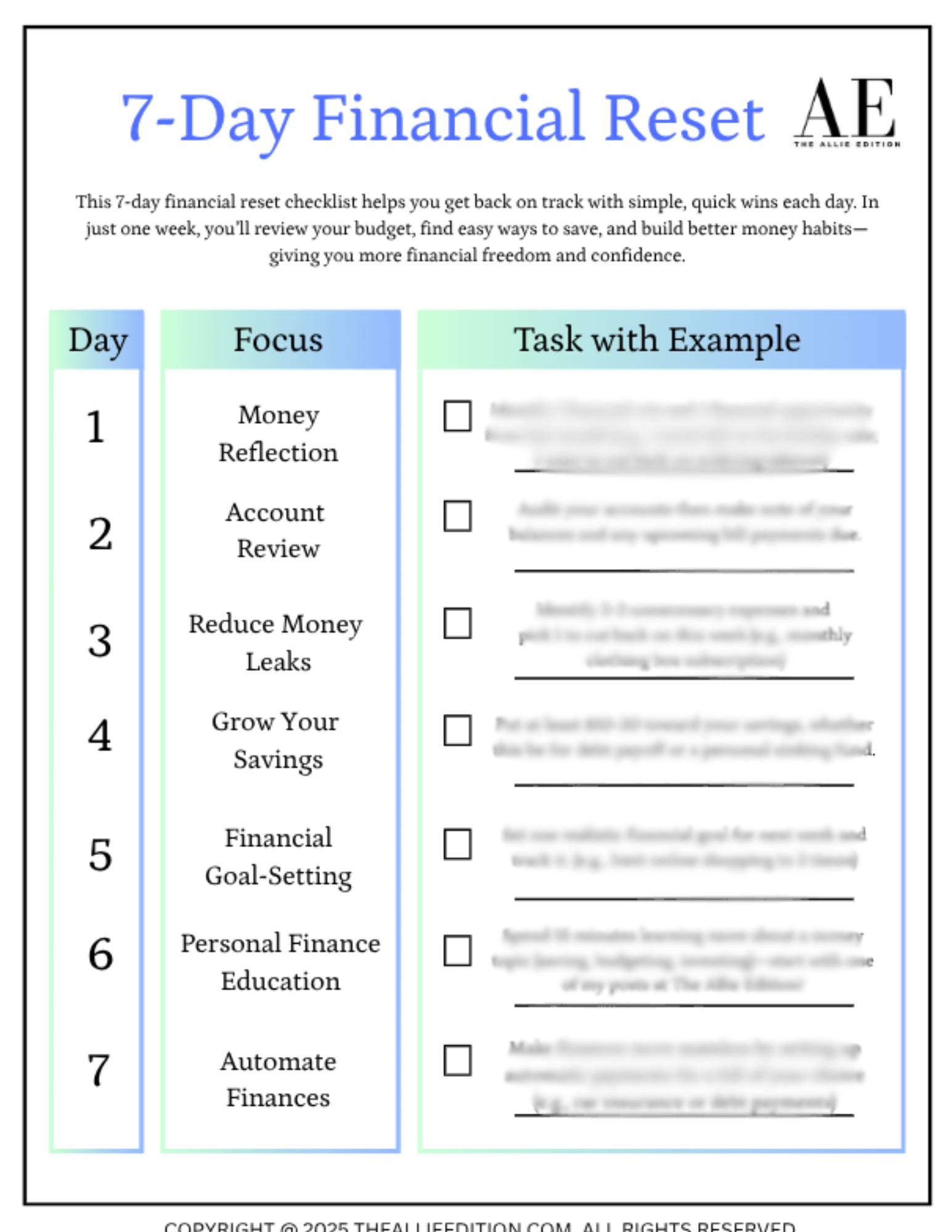 7-Day Financial Reset Checklist